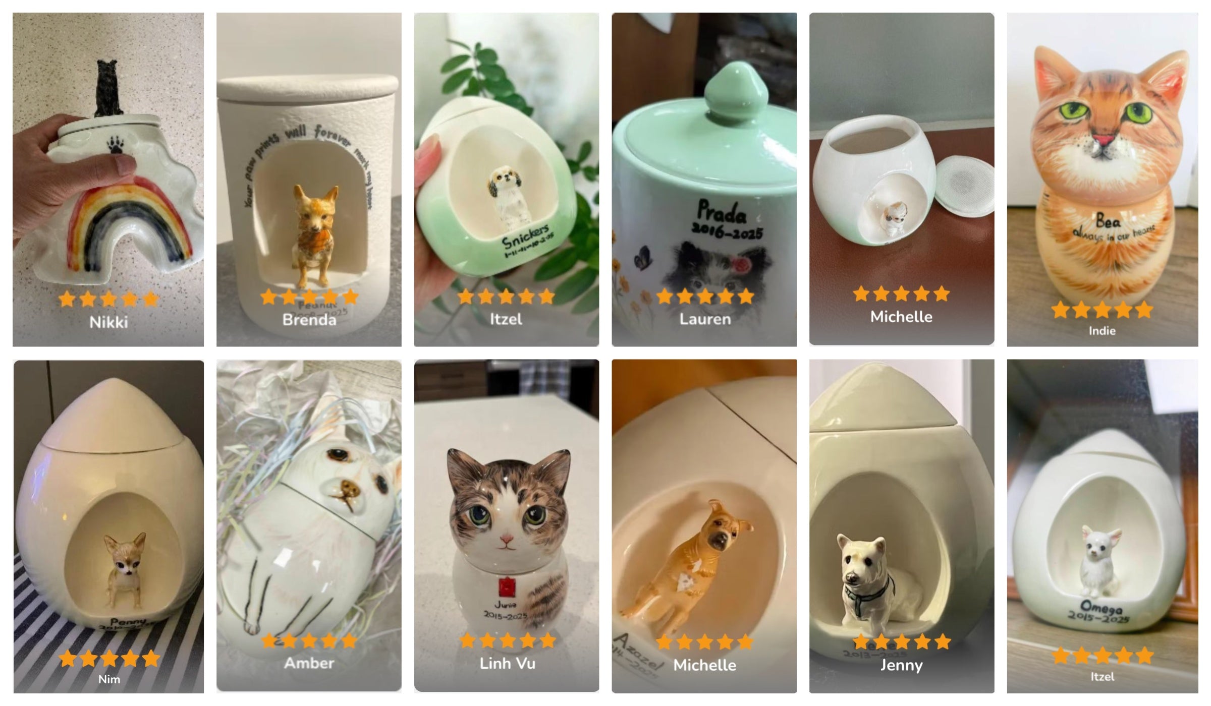 Every pet memorial is 100% handmade. This urn isn’t just a container—it’s a unique tribute crafted for your beloved pet. We handcraft each piece and recreate their likeness from your photo, adding their name and your personal message, so every detail truly captures their spirit.